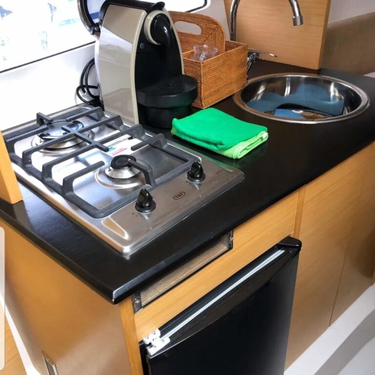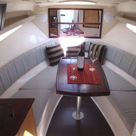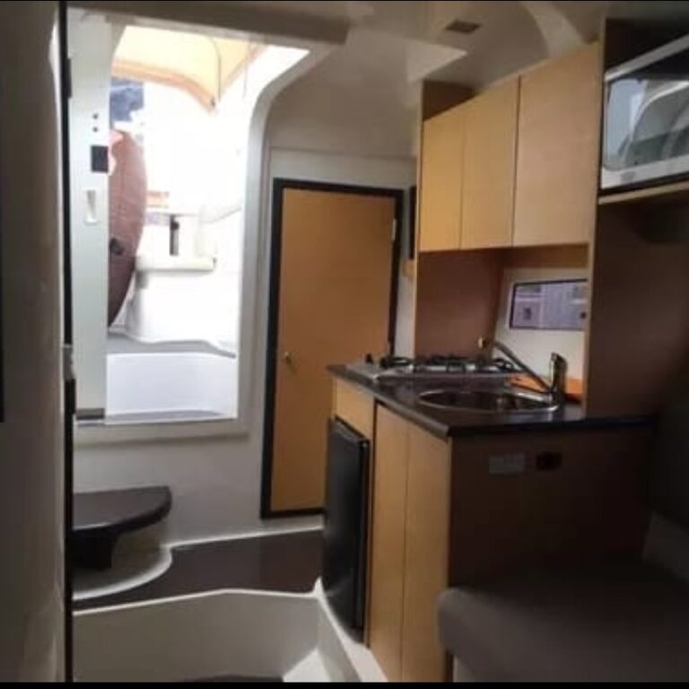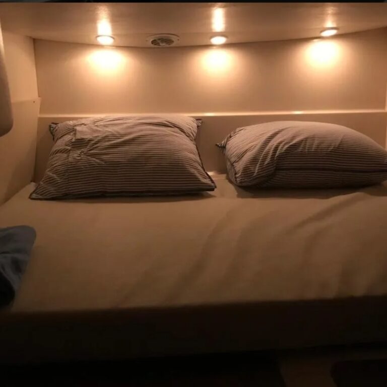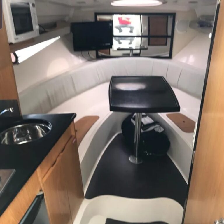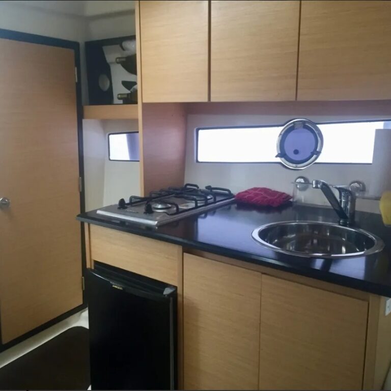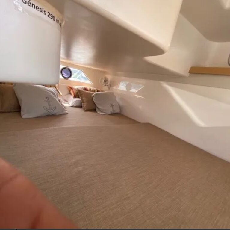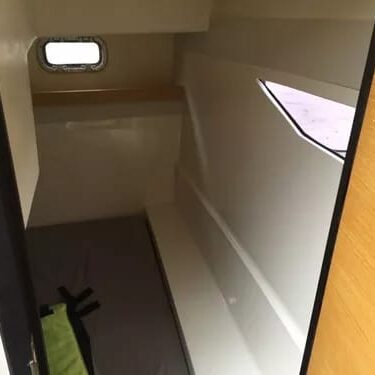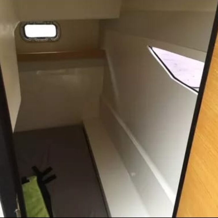 L’interno è straordinariamente accogliente, costruito con materiali di primissima qualità, con una cabina di poppa di ampie dimensioni, dotata di porta per una maggior privacy, cucina allestita con fornelli, lavabo e frigorifero e infine un bagno con wc elettrico.