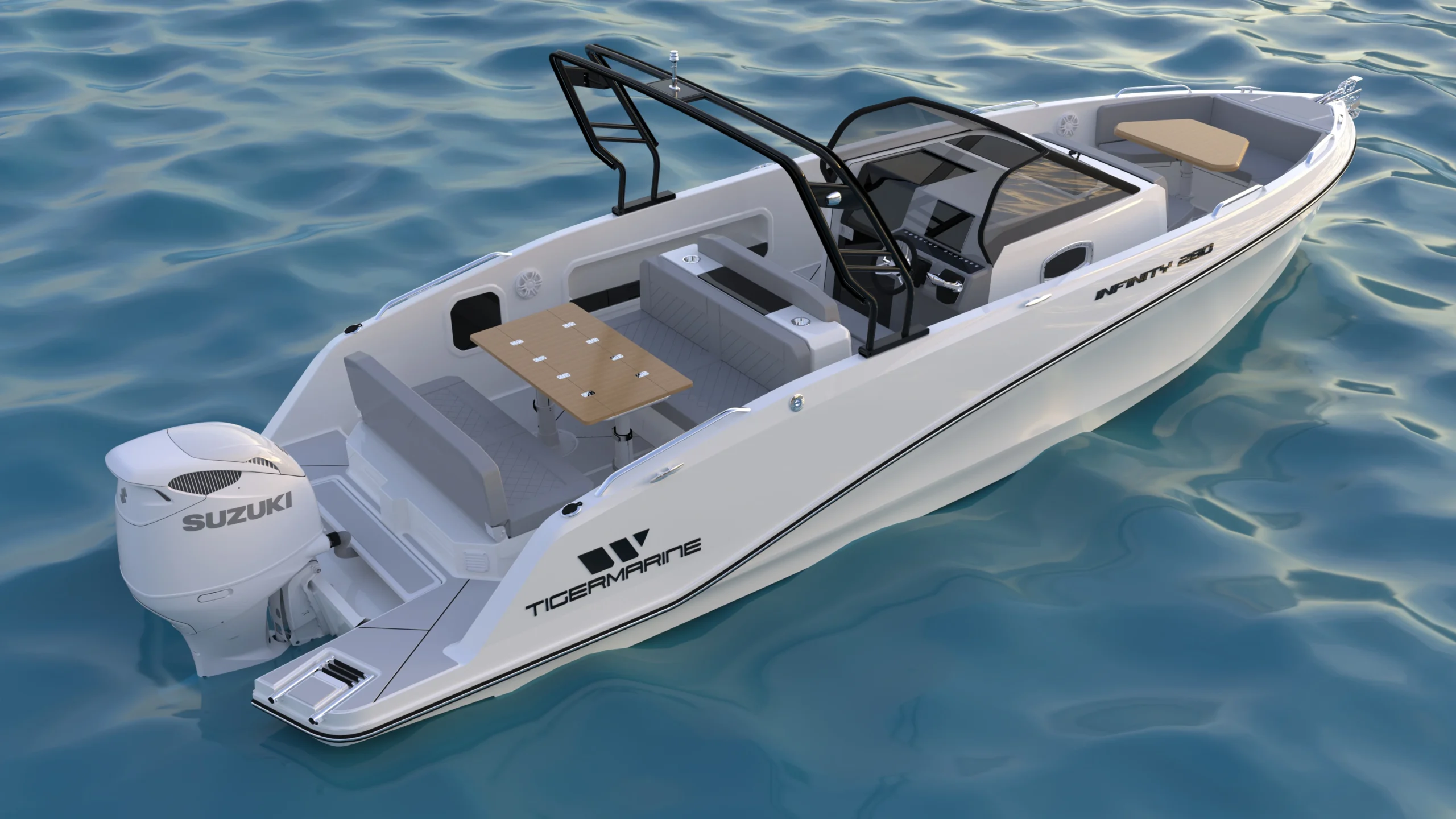 L’Infinity 280 rappresenta la perfetta fusione tra innovazione e lusso. L’impegno per l’eccellenza si manifesta in ogni dettaglio: dal design esterno dalle linee eleganti agli interni realizzati con cura artigianale. Scopri perché i navigatori più esigenti scelgono Tiger Marine per le loro avventure più memorabili sull’acqua.